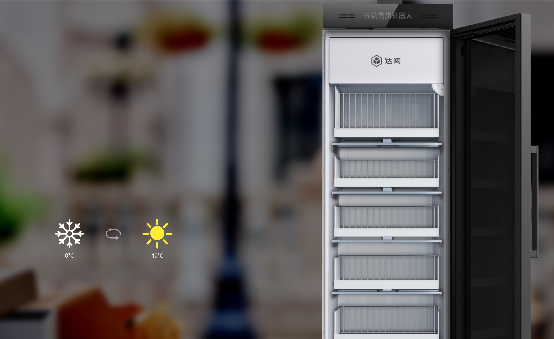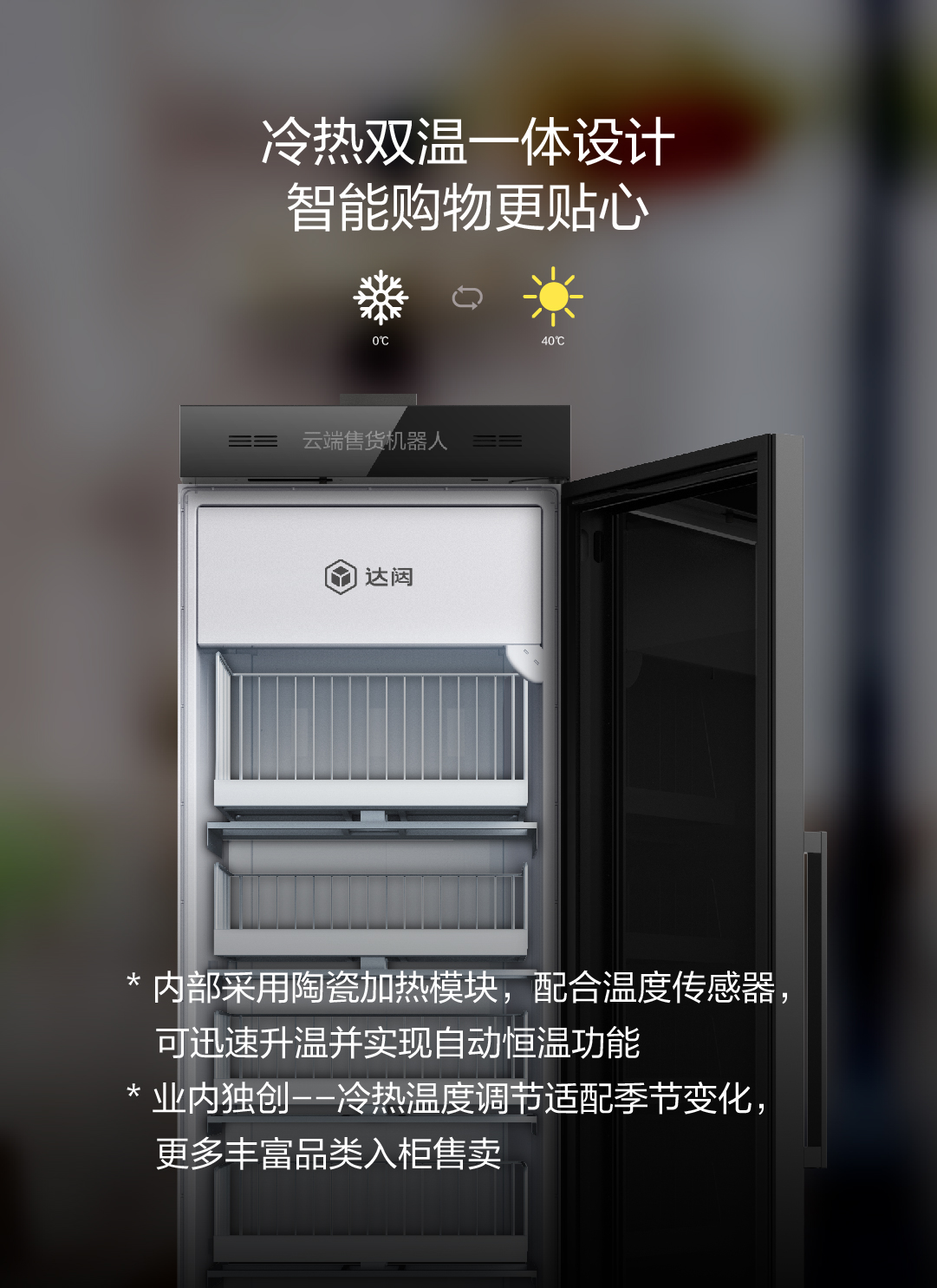 * 业内独创--冷热温度调节适配季节变化,更多丰富品类入柜售卖